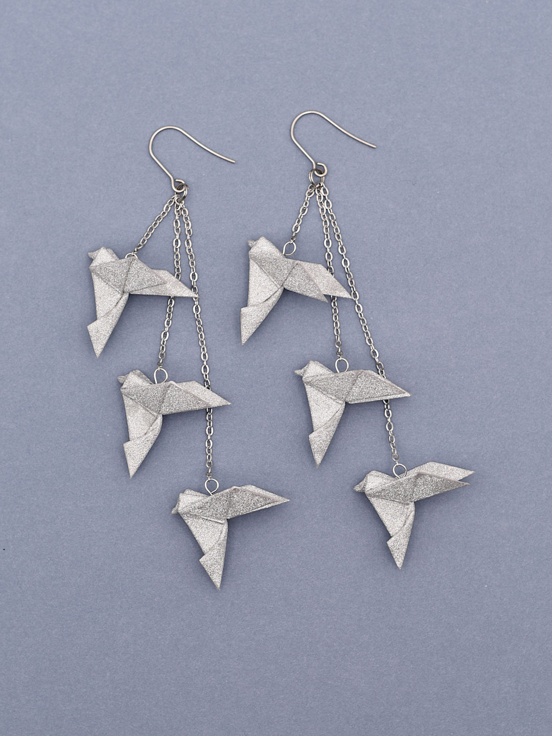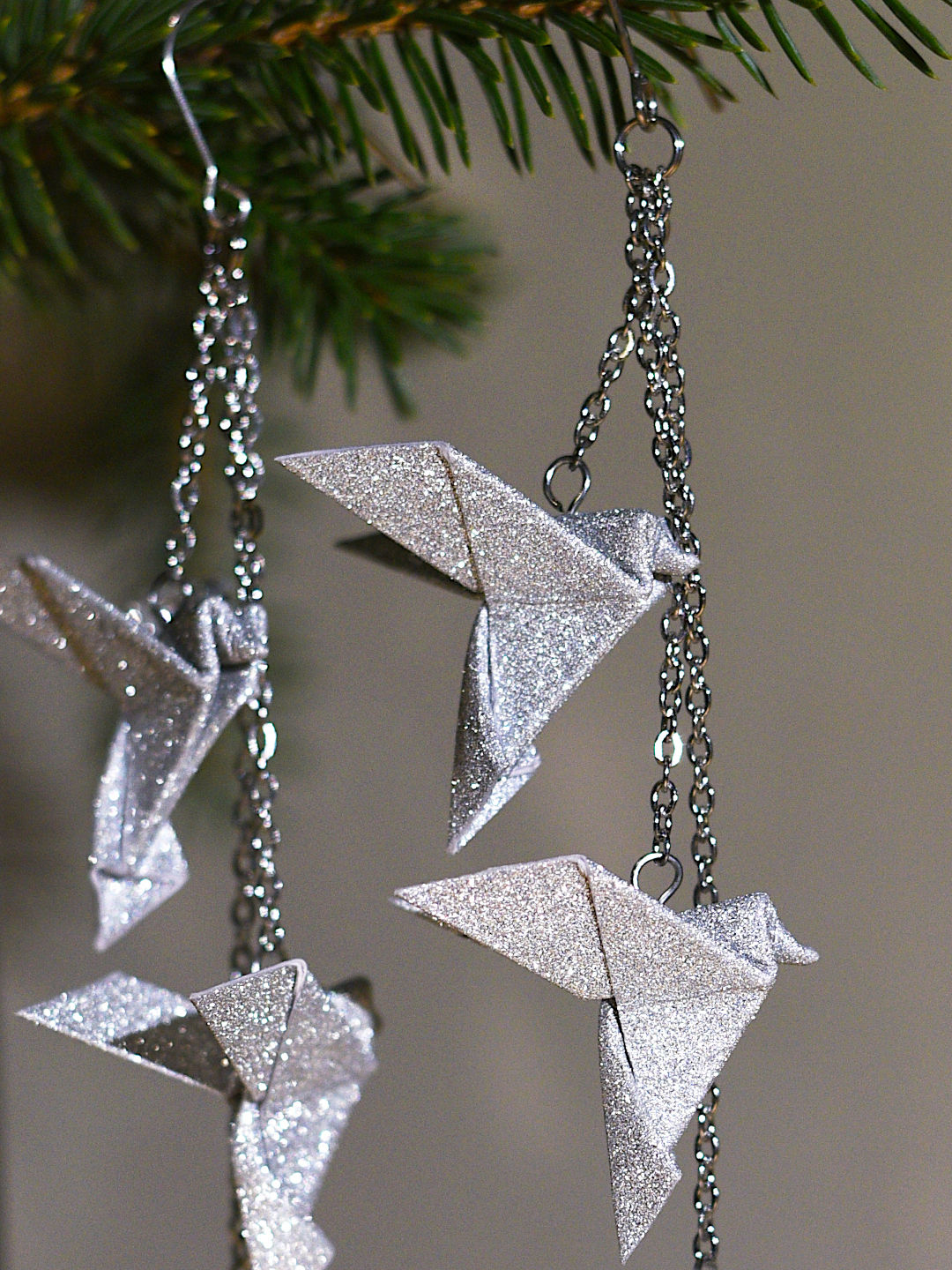 holiday special origami earrings – hand made from sparkling silver glitter paper, mounted on stainless steel hooks.
